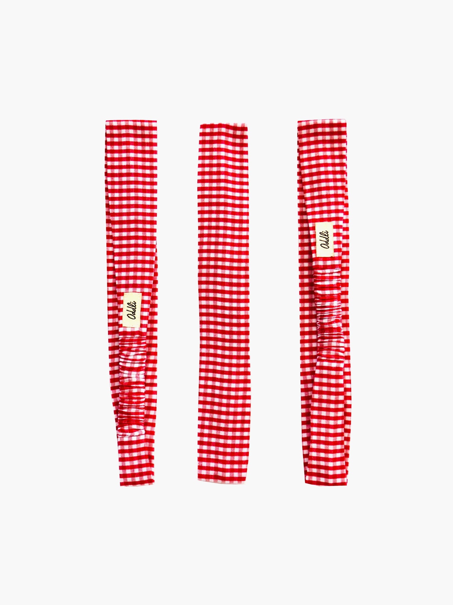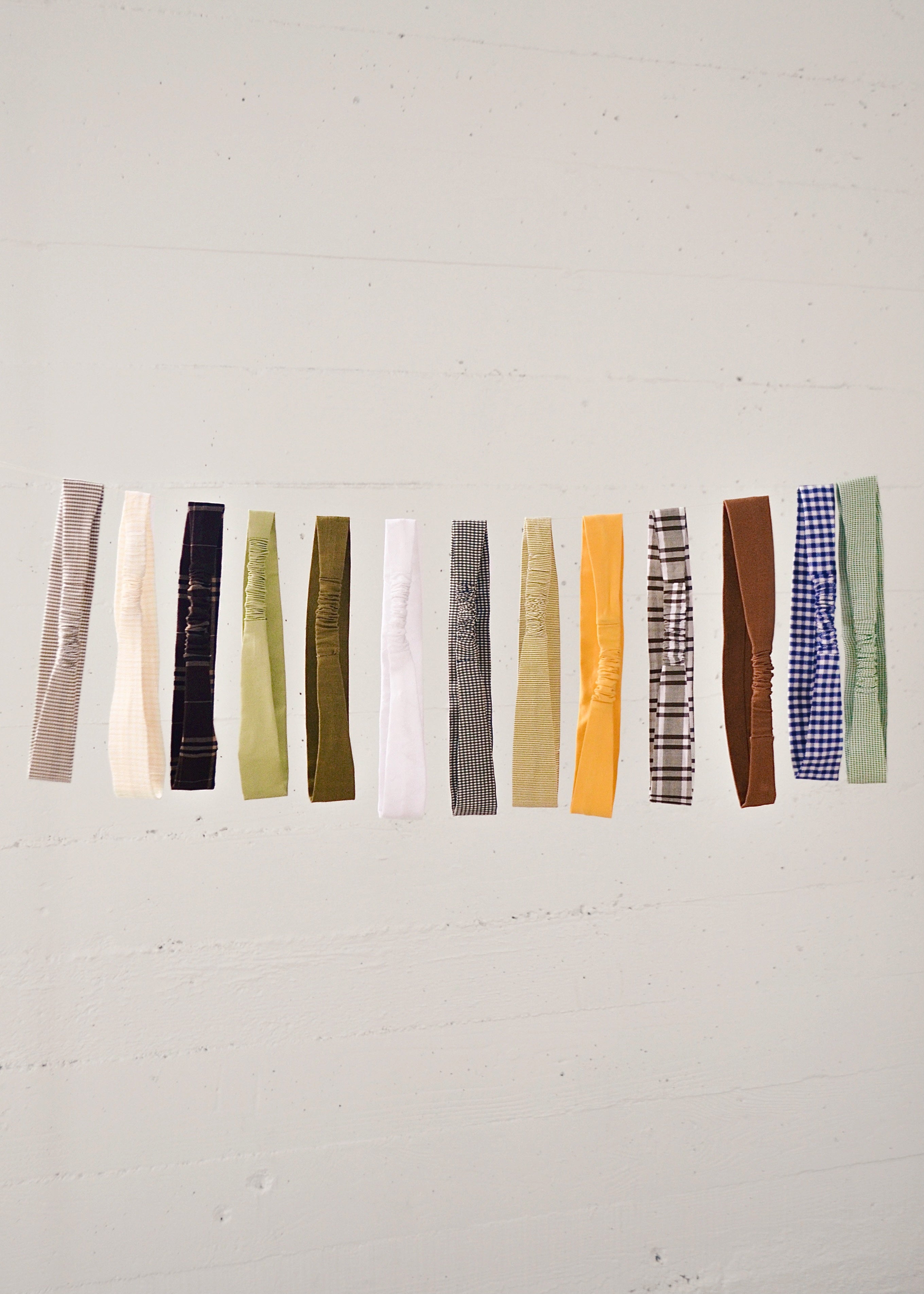 We noticed that there was perfect fabric leftover on the cutting table when we made other pieces (this is always the case when any piece of clothing is made just because of how the cutting works) and the fabric is most often thrown away. We decided to make headbands from them.