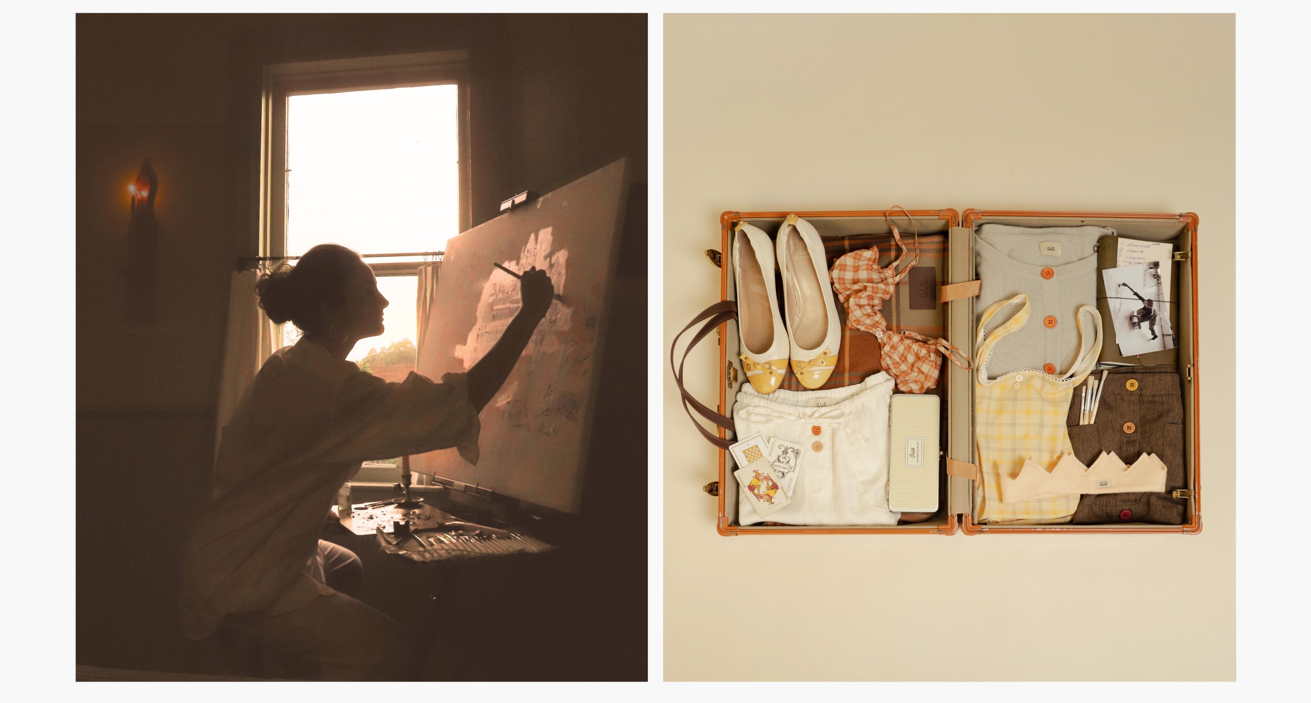 The Artist is a free-thinker, creative by nature, and expressive across every medium she touches. Her imagination extends far beyond the canvas, shaping how she dresses, moves, and makes sense of the world. She draws inspiration from the greats - the ease of Georgia O’Keeffe, the boldness of Frida Kahlo, the quiet poetry of Joan Didion - and her style reflects a life built on intuition and play.