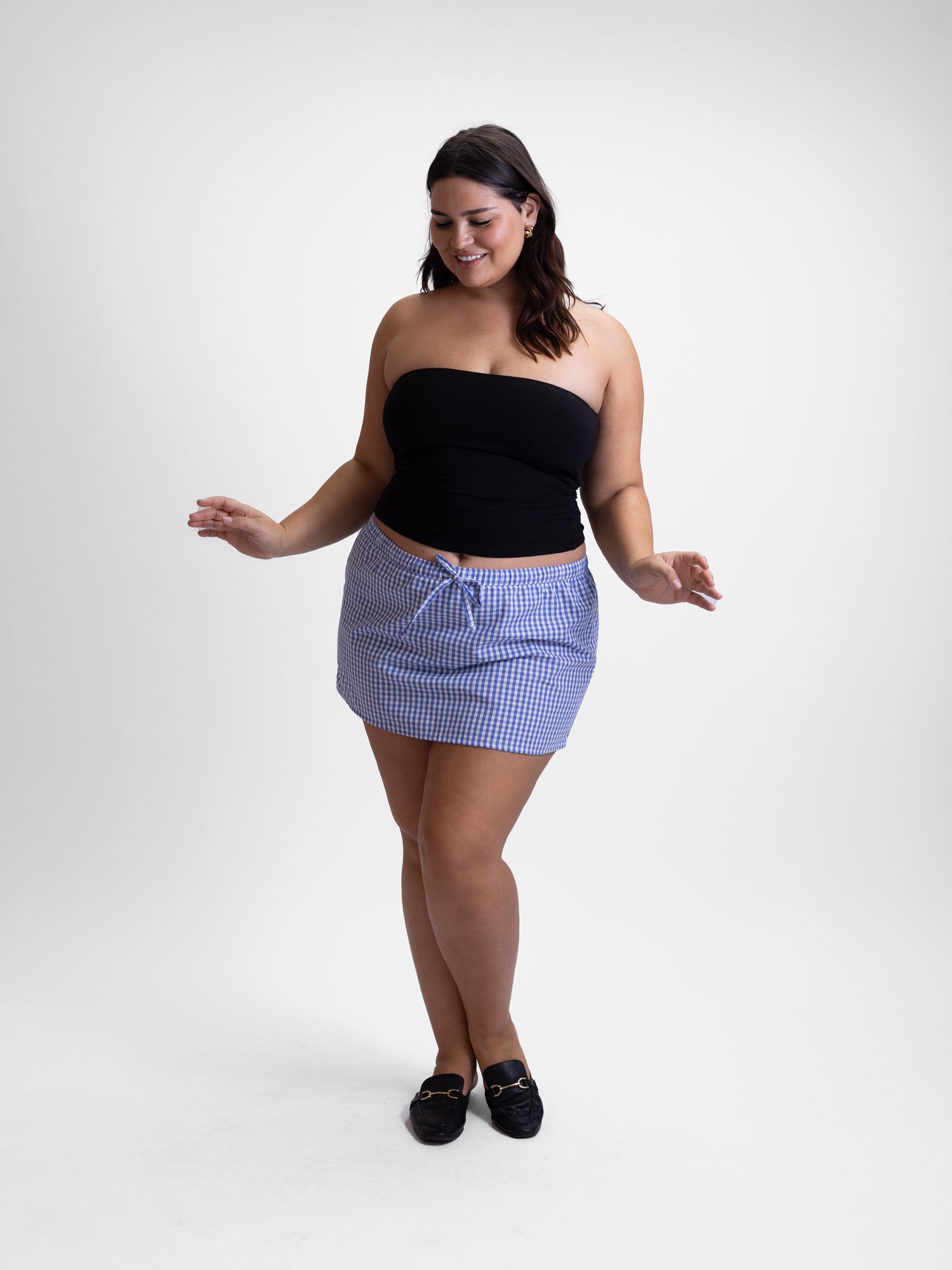 The elastic waistband of the mini skirt is stretchy and if you are between sizes you  will likely fit into both. Which size you order depends on preference. We recommend smaller for a more fitted style and larger for a baggier fit.