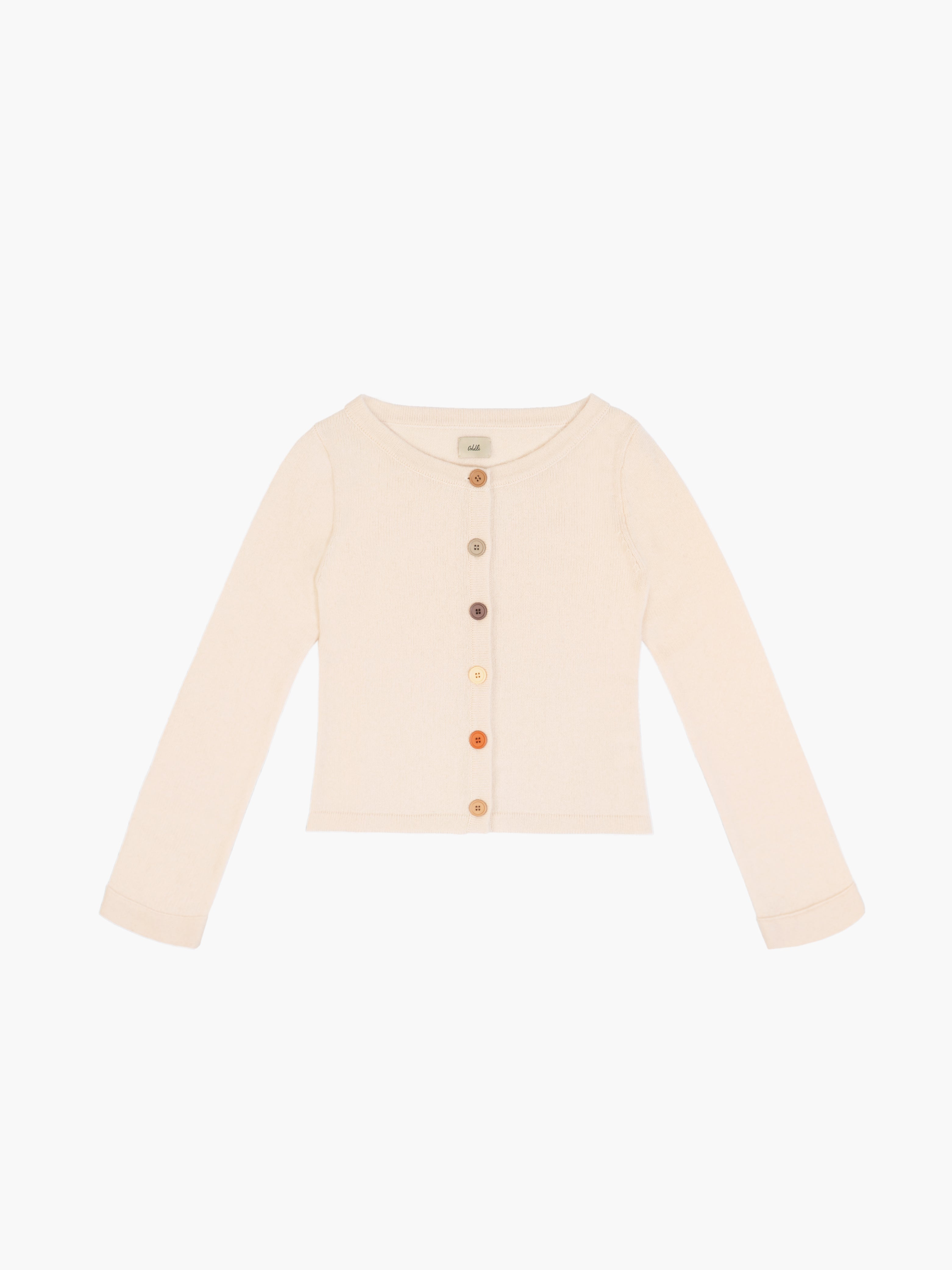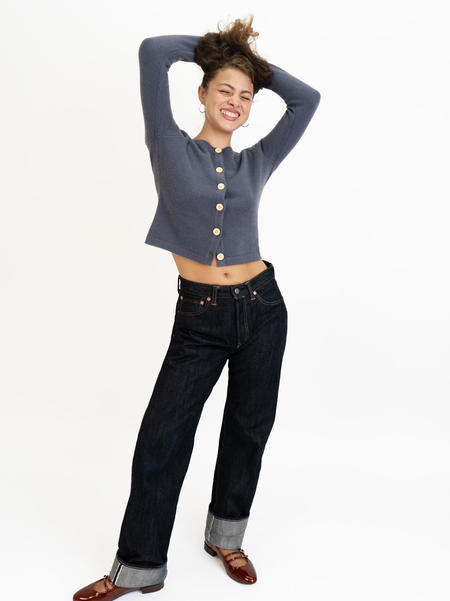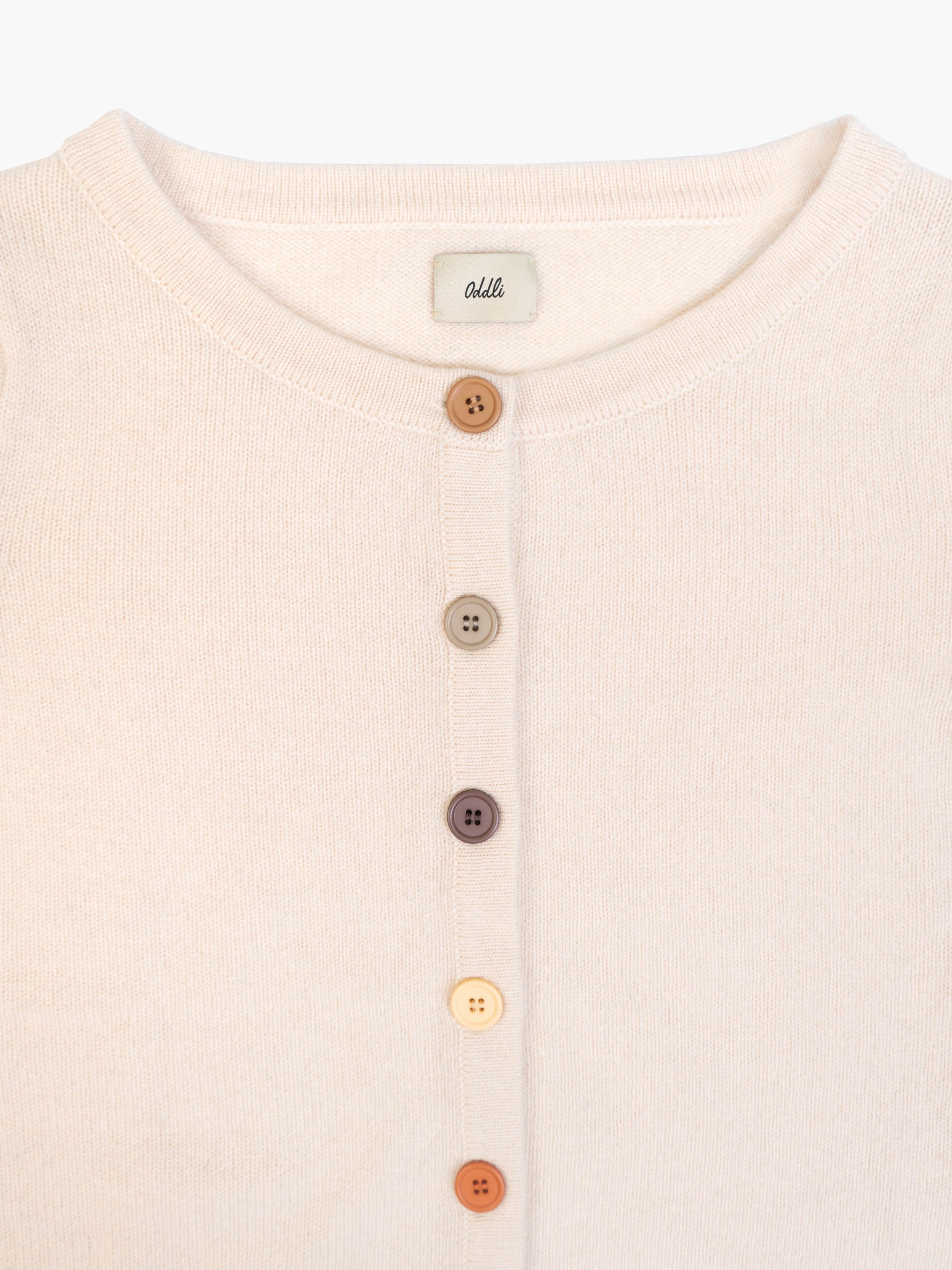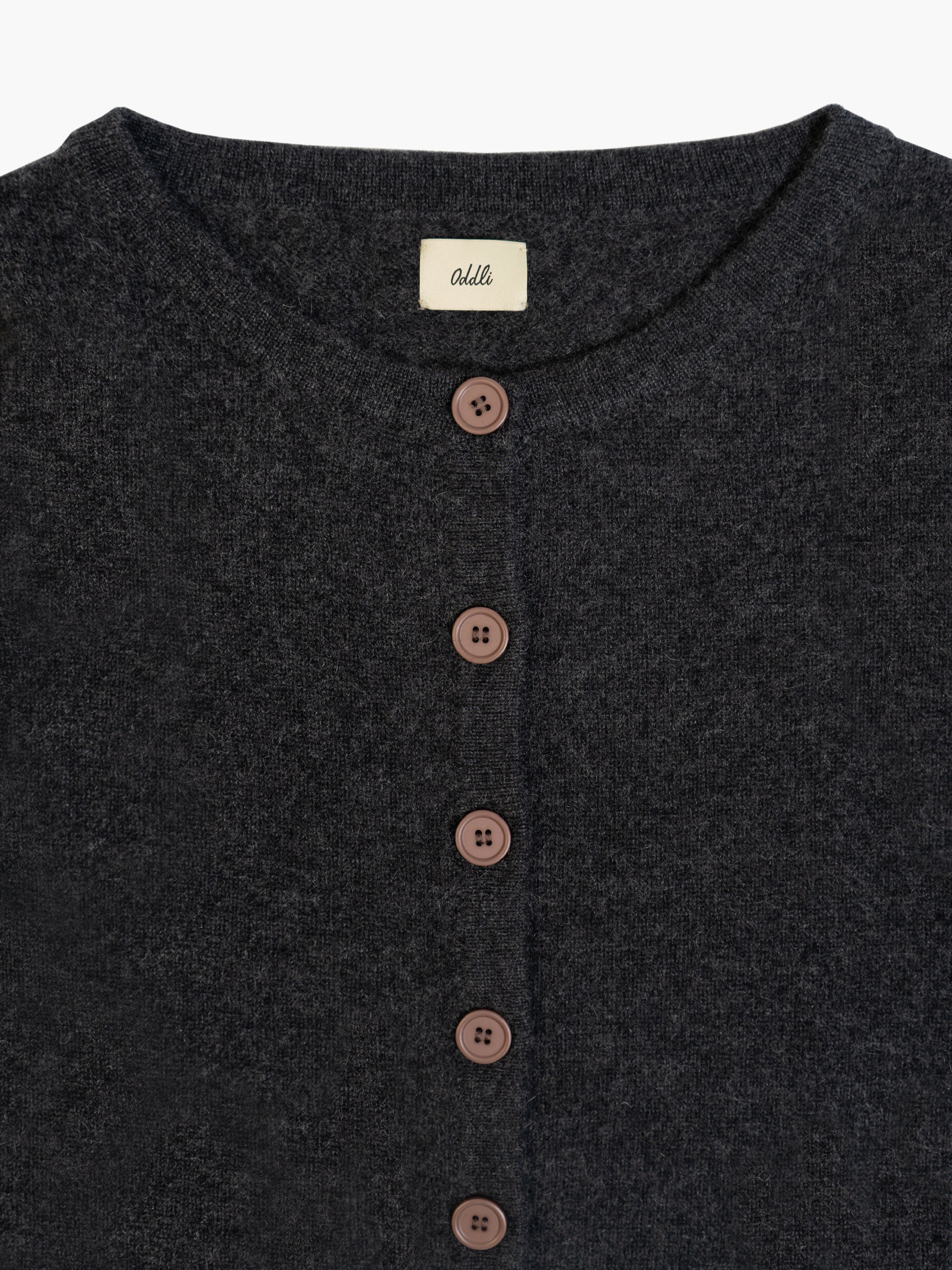 This cardigan is made of 100% Cashmere and has 6 custom Oddli Buttons with a spare button included