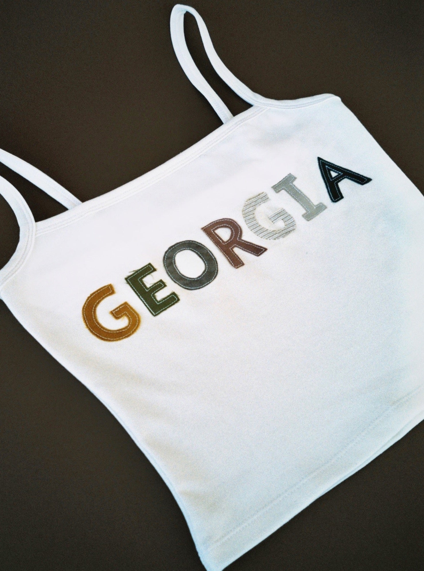 TANK: The shirt runs true to size for a snug fit. Fifi wears size XS and Georgia wears size S.