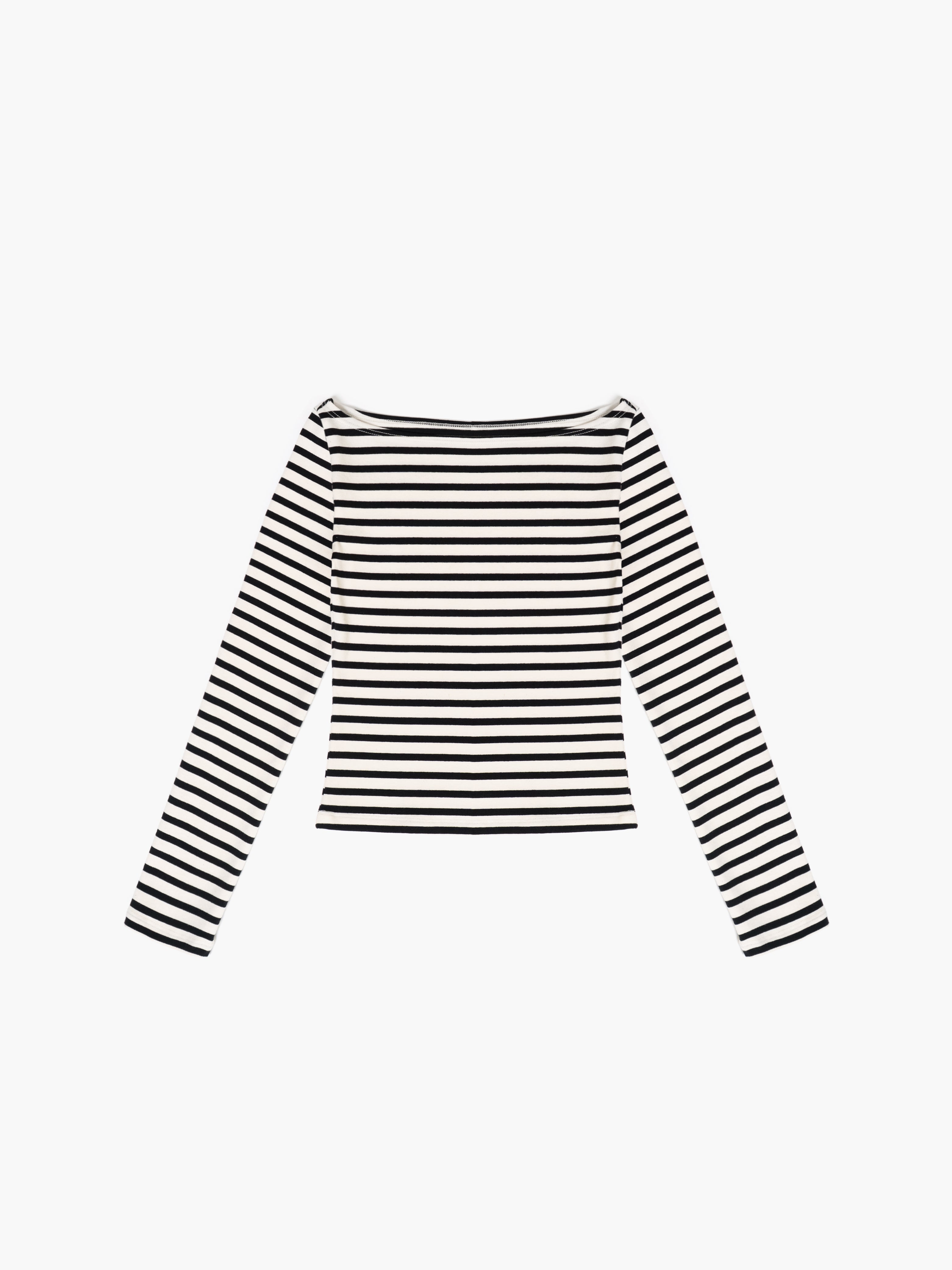 The perfect long sleeve top designed with a boat neck cut. Some colors have two decorative buttons. The length sits just above the waistline for a non cropped fit and the perfect length sleeve that hits just at the wrist. Fabric is a breathable organic cotton jersey - soft and perfect for holiday as a layer or on its own.