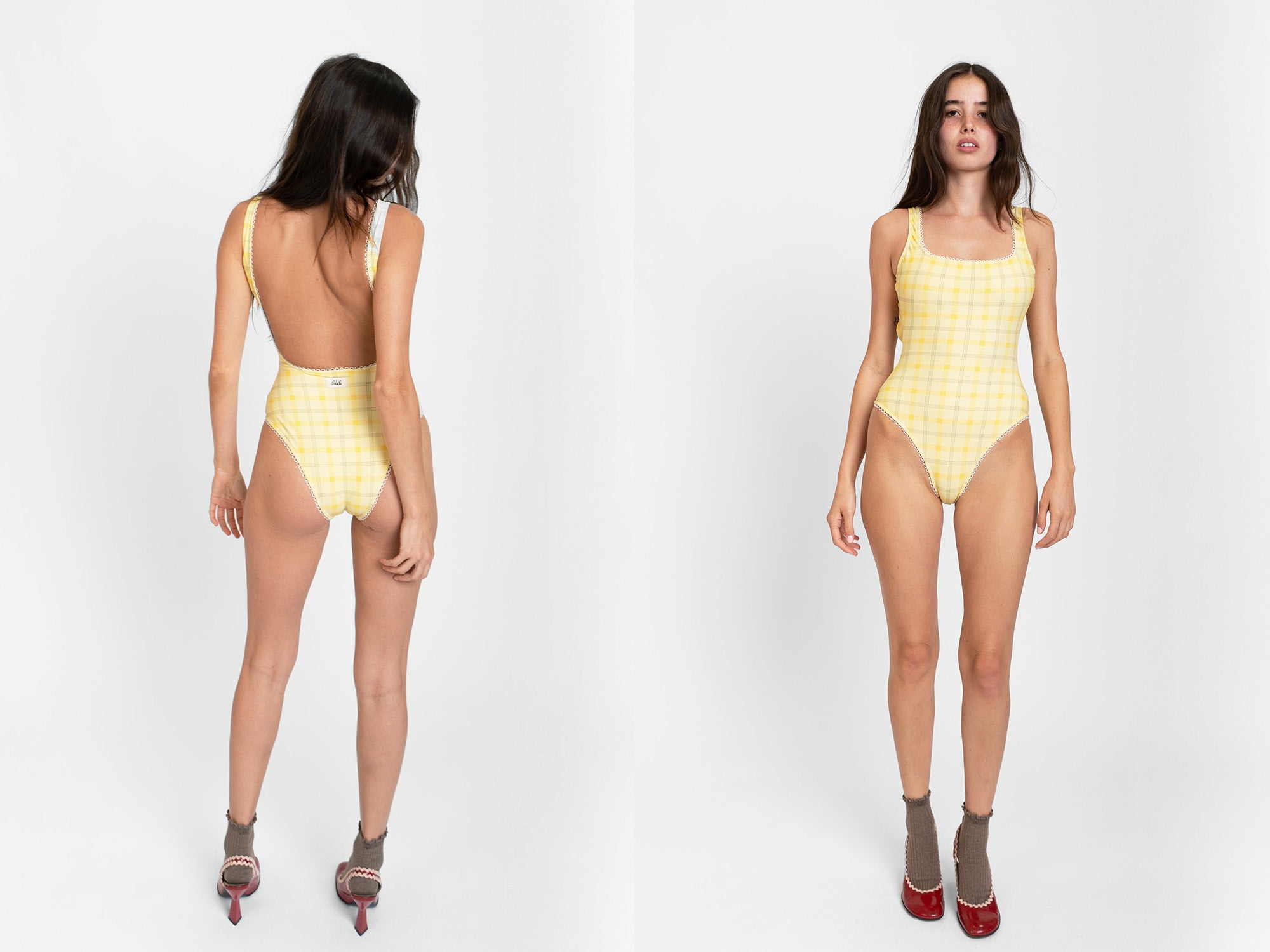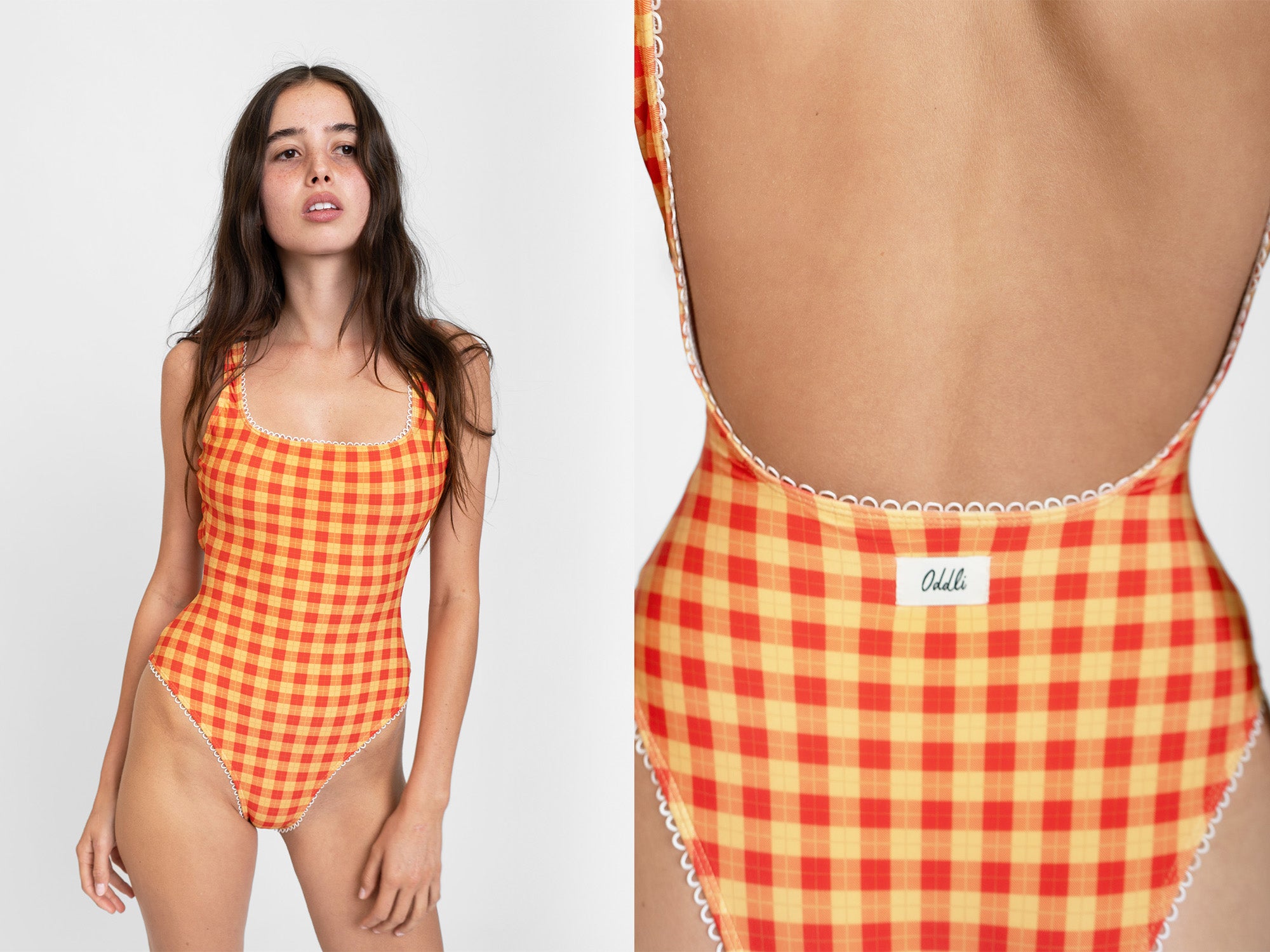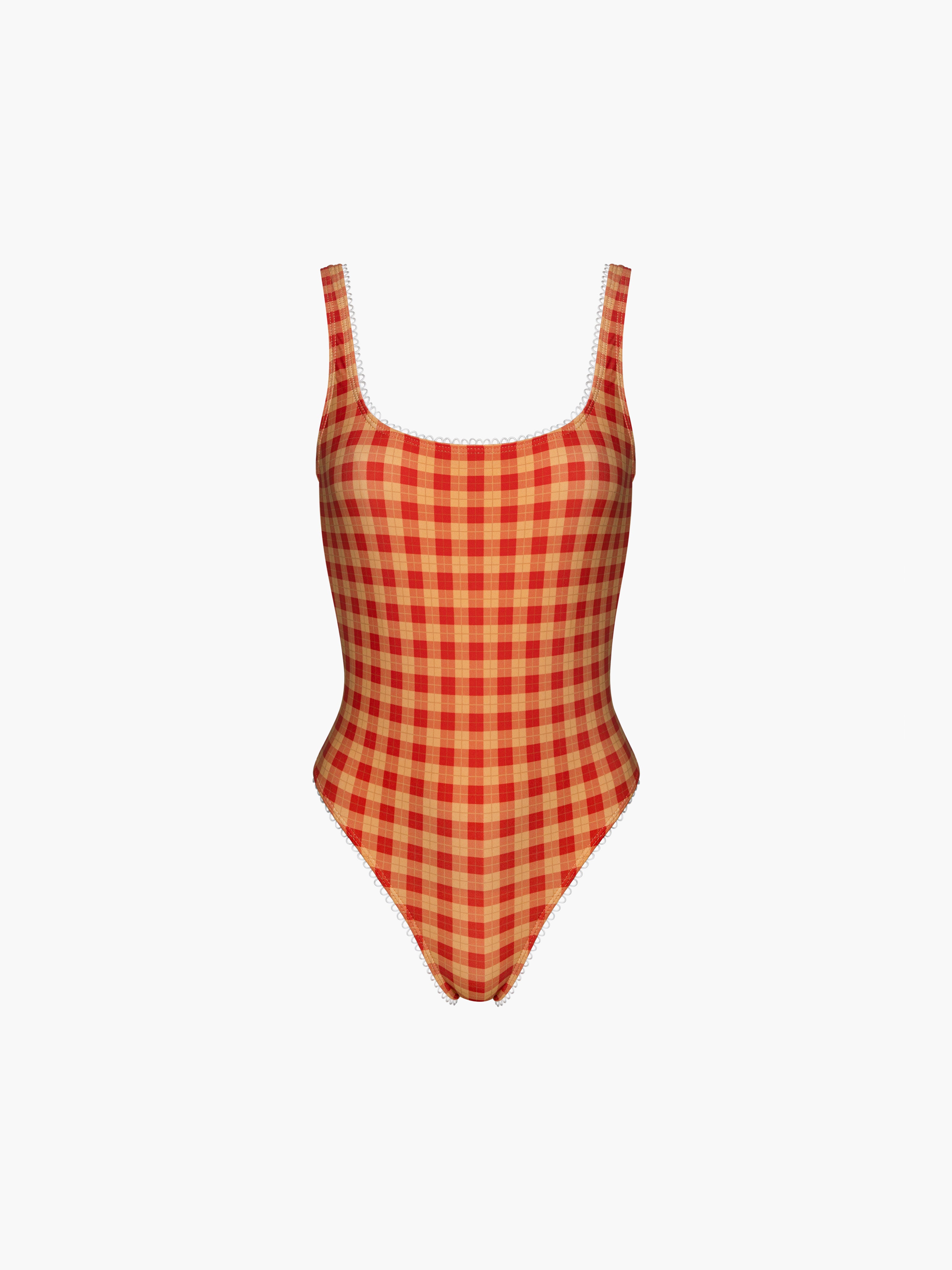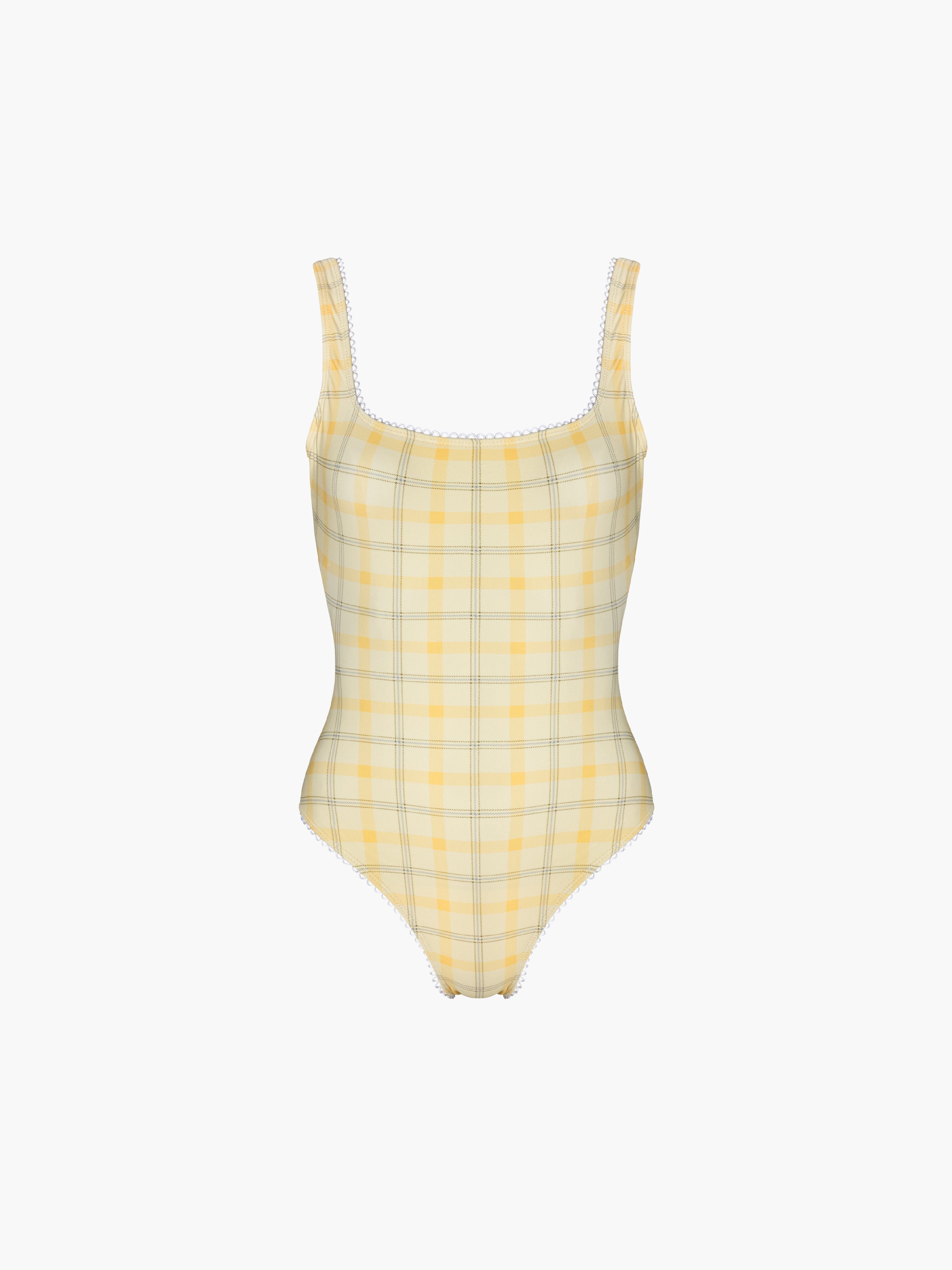 Hand designed custom plaids with the perfect off white lining, low back, and scalloped trim finish. Can also be worn as a body suit.
