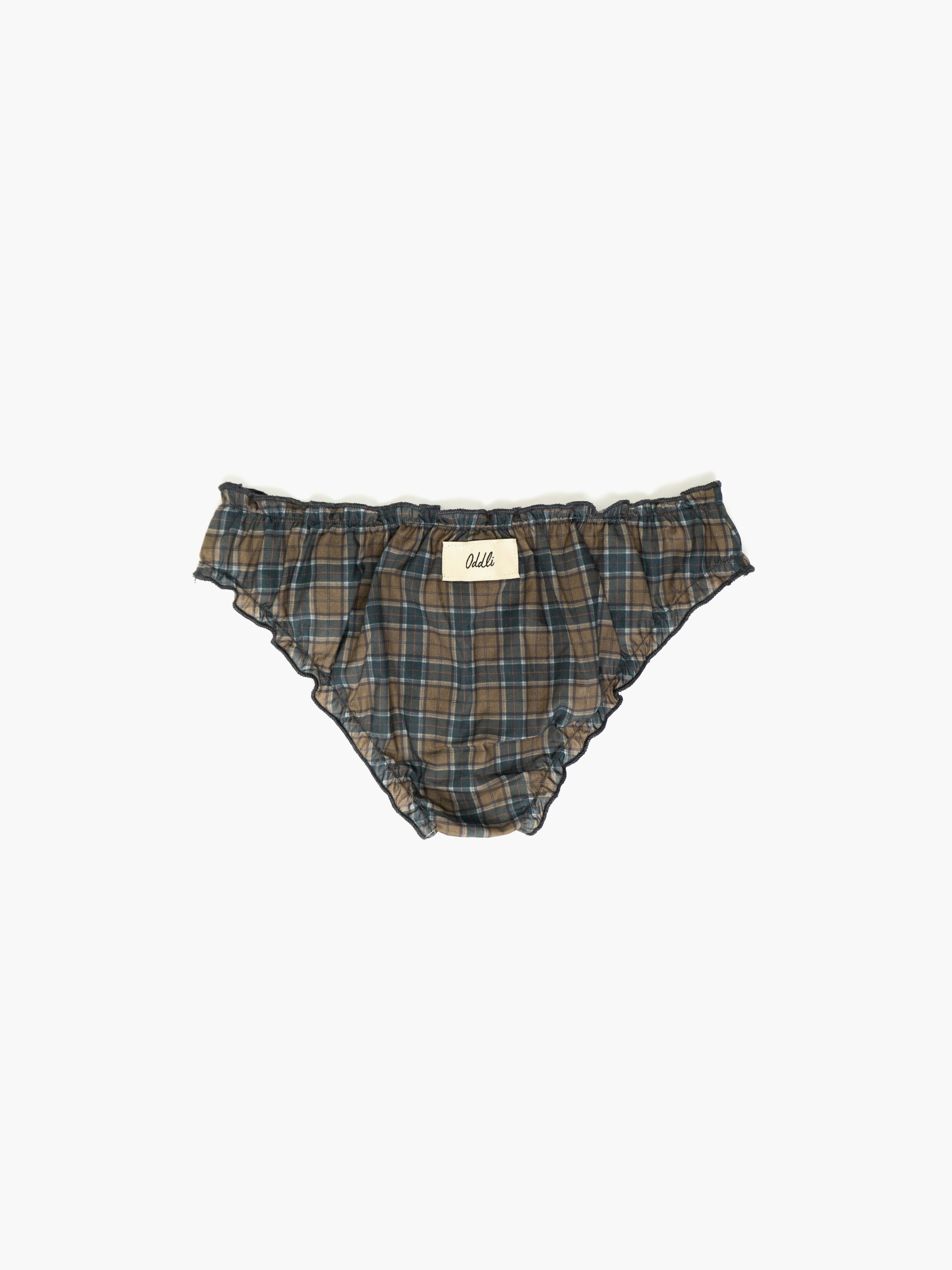 Jensen's plaids hand designed complete with a ruffled trim and two buttons. The bloomer is the perfect compliment to any outfit, and the most comfortable to wear.  Piece is cut & sewn in downtown Los Angeles.