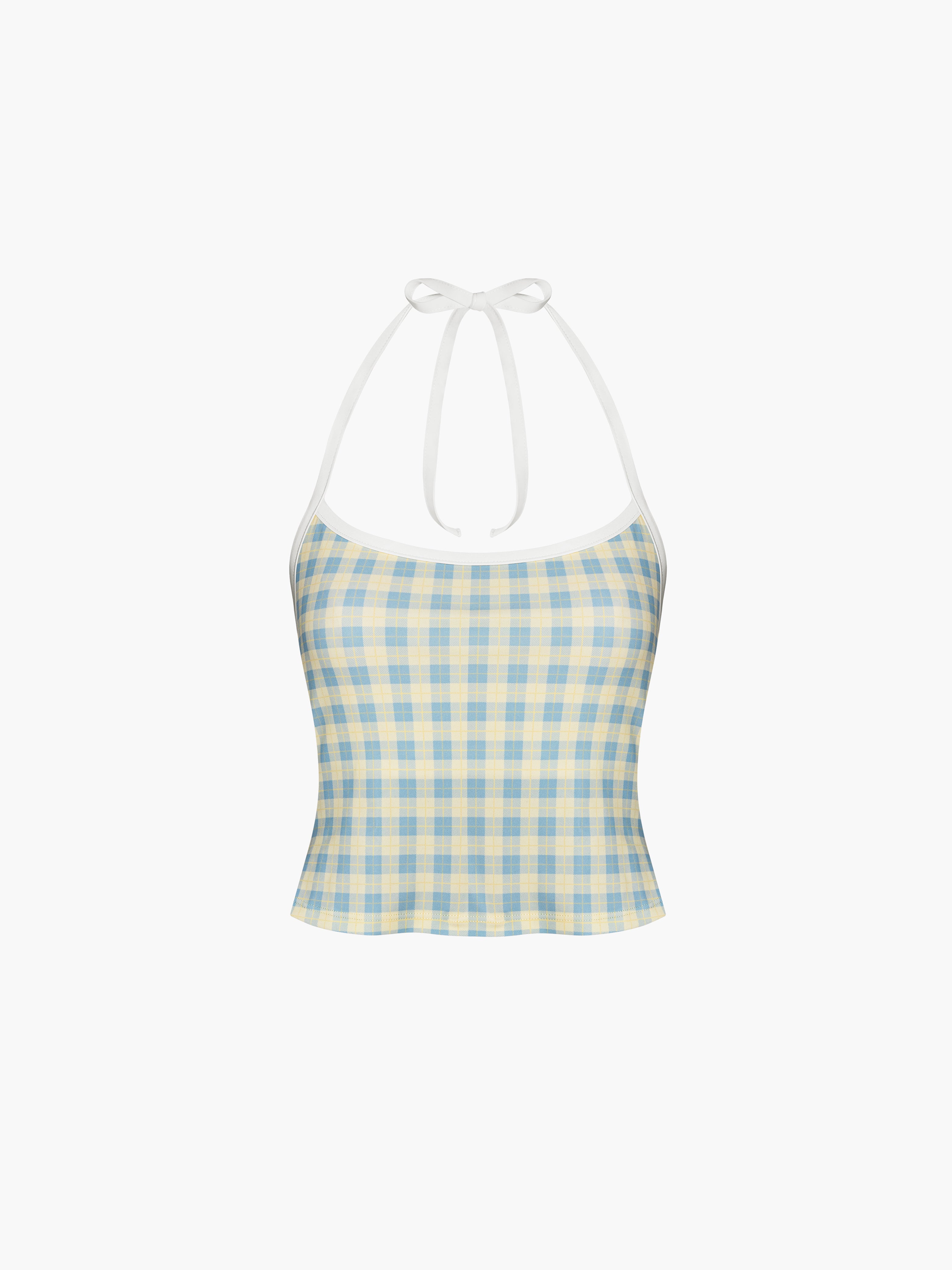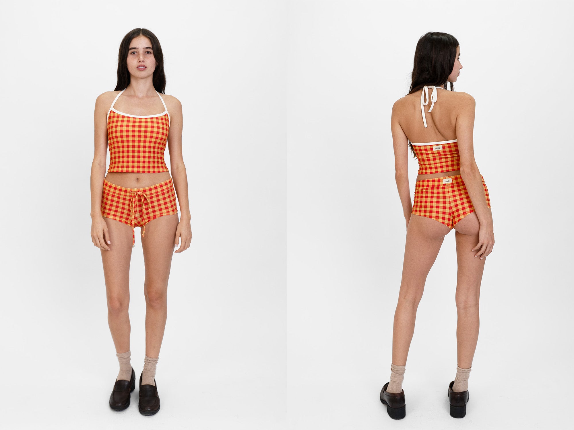 Oddli Tankini Top in custom designed plaids. Your favorite childhood tankini top reinvented. Includes a built in lining shelf for comfortable, additional support. Can also be styled as a precious top.